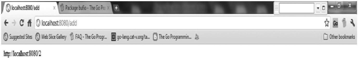 添加一个长 URL 以获取等价的缩短版本,例如 http://golang.org/pkg/bufio/#Writer,然后单击按钮。应用会为你产生一个短 URL 并打印出来,例如 http:// localhost:8080/2