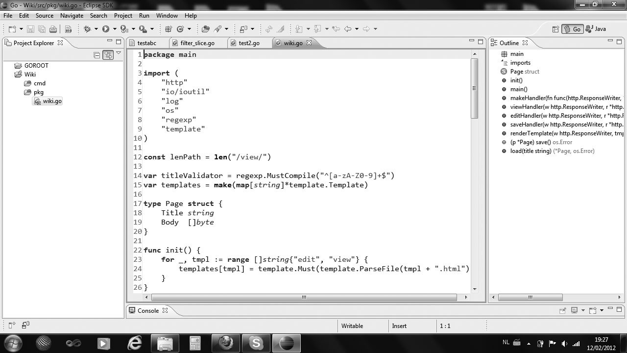 图 3.2 GoClipse 代码编辑界面、抽象语法树视图和项目管理