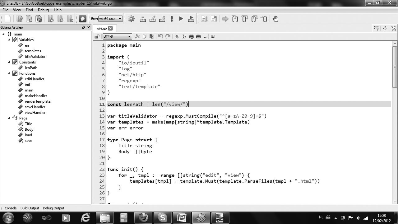 LiteIDE 这是一款专门针对 Go 开发的集成开发环境,在编辑、编译和运行 Go 程序和项目方面都有非常好的支持。同时还包括了对源代码的抽象语法树视图和一些内置工具(此开发环境由国人 vfc 大叔开发)。